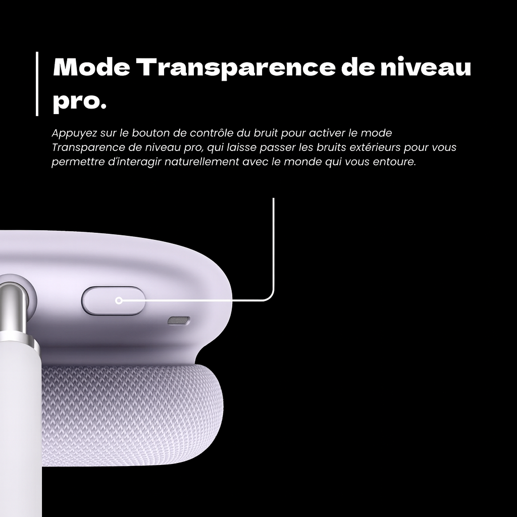 Bloquez le monde et plongez dans l’instant : Le AIRPODS MAX intègre le Mode de Réduction de Bruit Active Pro, assurant une isolation sonore totale et reconnue comme la meilleure du marché pour vous garantir une concentration ou une immersion maximale, n’importe où.
