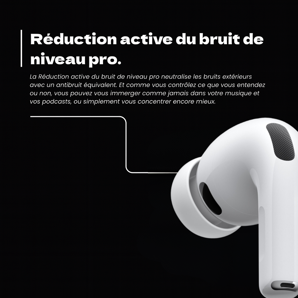 Bloquez le monde et plongez dans l’instant : Les Pro 3 intègre le Mode de Réduction de Bruit Active Pro, assurant une isolation sonore totale et reconnue comme la meilleure du marché pour vous garantir une concentration ou une immersion maximale, n’importe où.